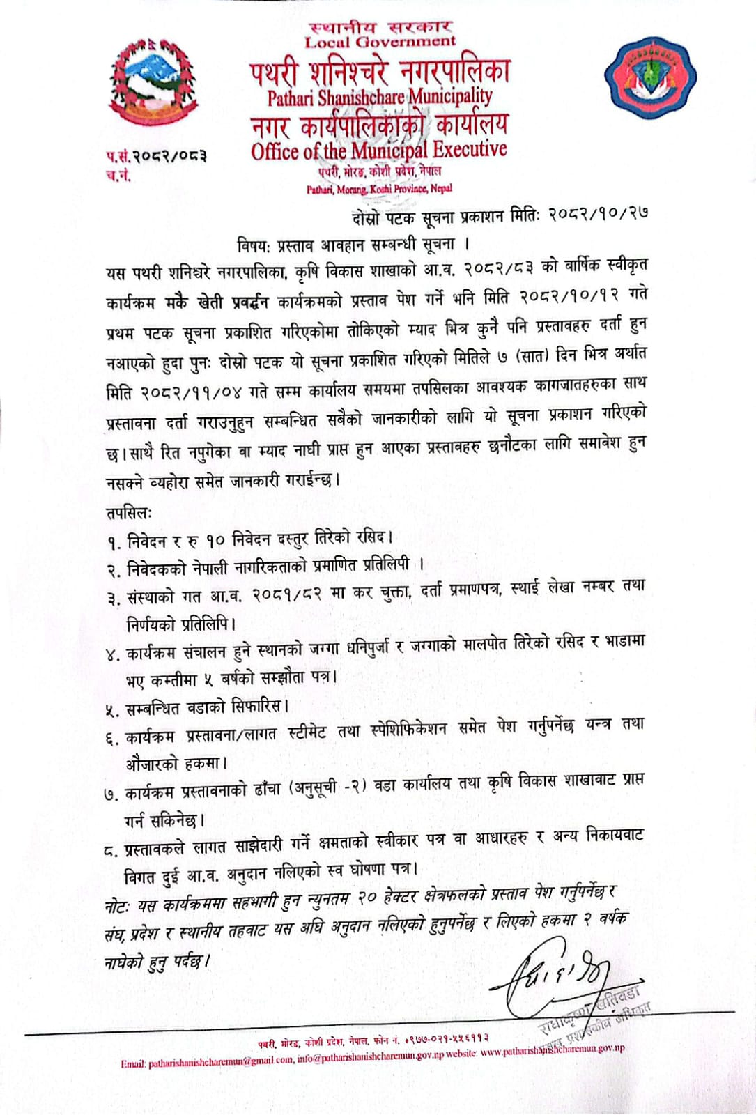 » प्रस्ताव आह्वान सम्बन्धी सूचना ।