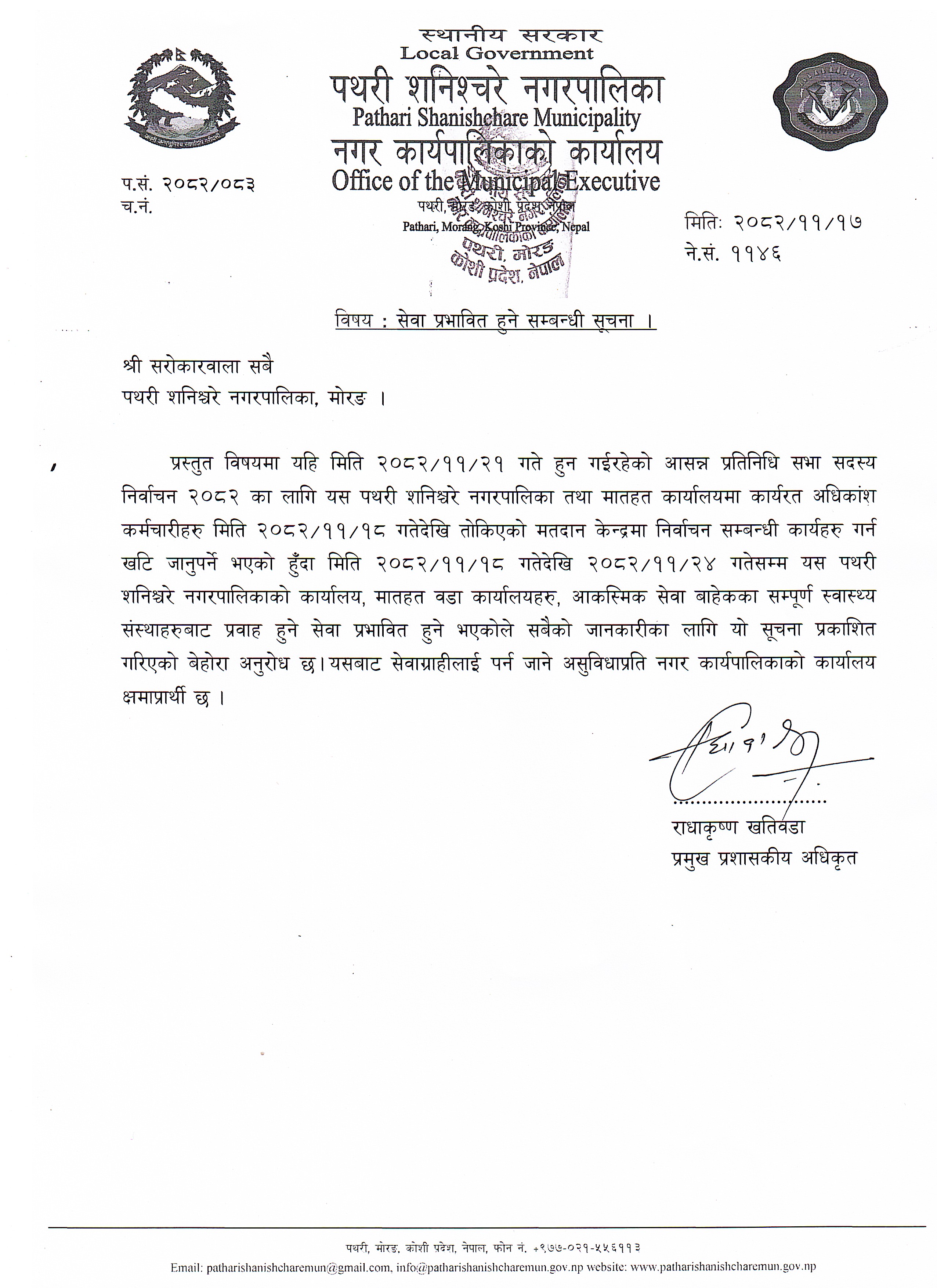 » सेवा प्रभावित हुने सम्बन्धी सूचना ।