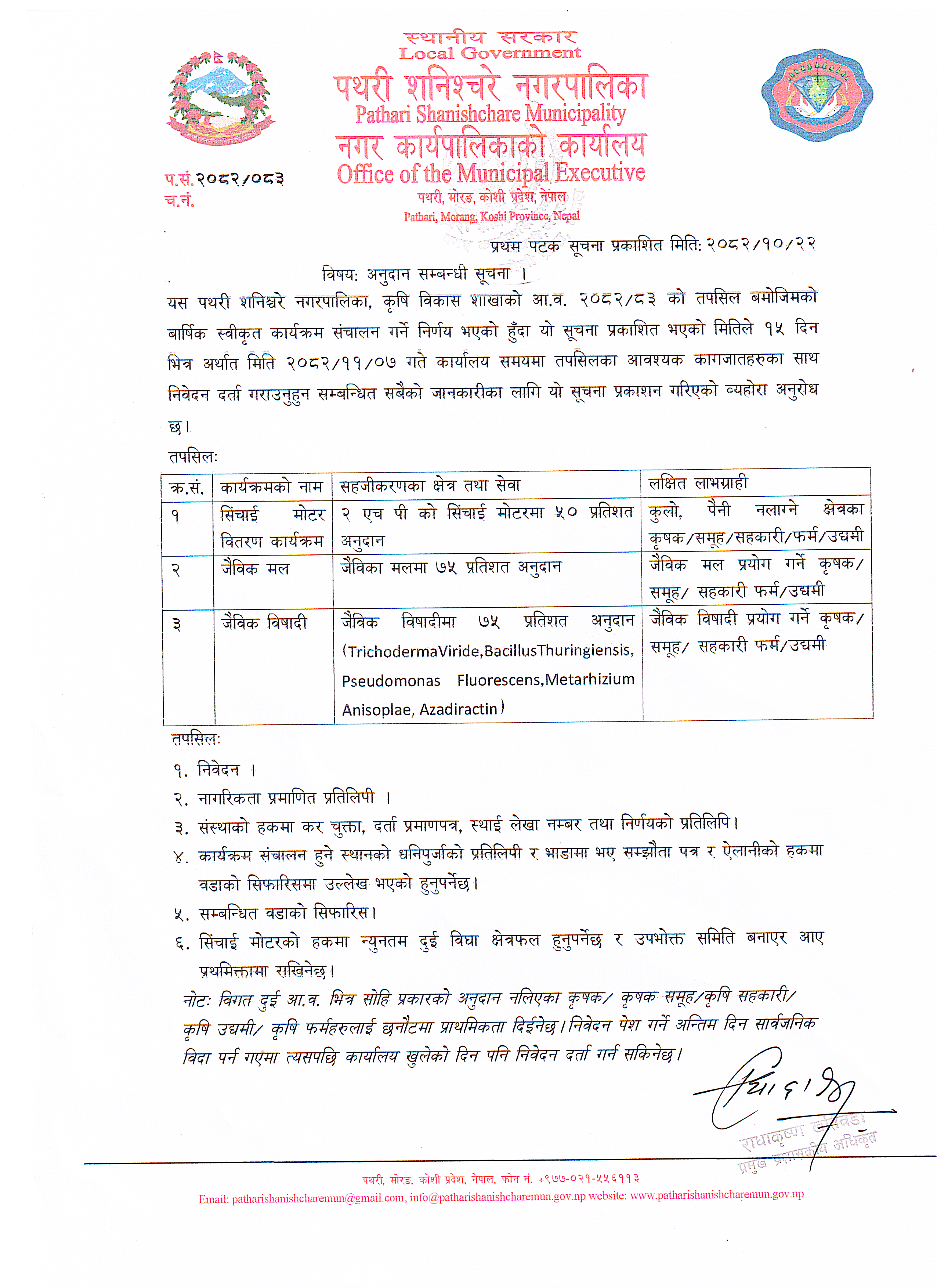 पथरीशनिश्चरे नगरपालिका,नगर कार्यपालिकाको कार्यालय
