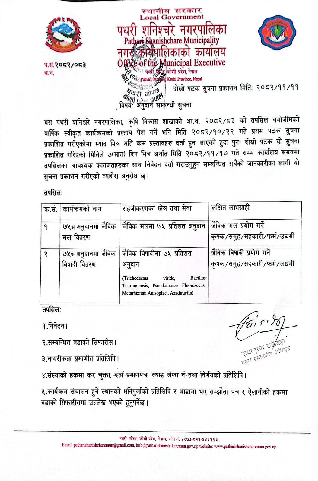 पथरीशनिश्चरे नगरपालिका काे अा.ब. २०७३।७४ मा सम्पन्न गरीने याेजनाकाे विवरण
