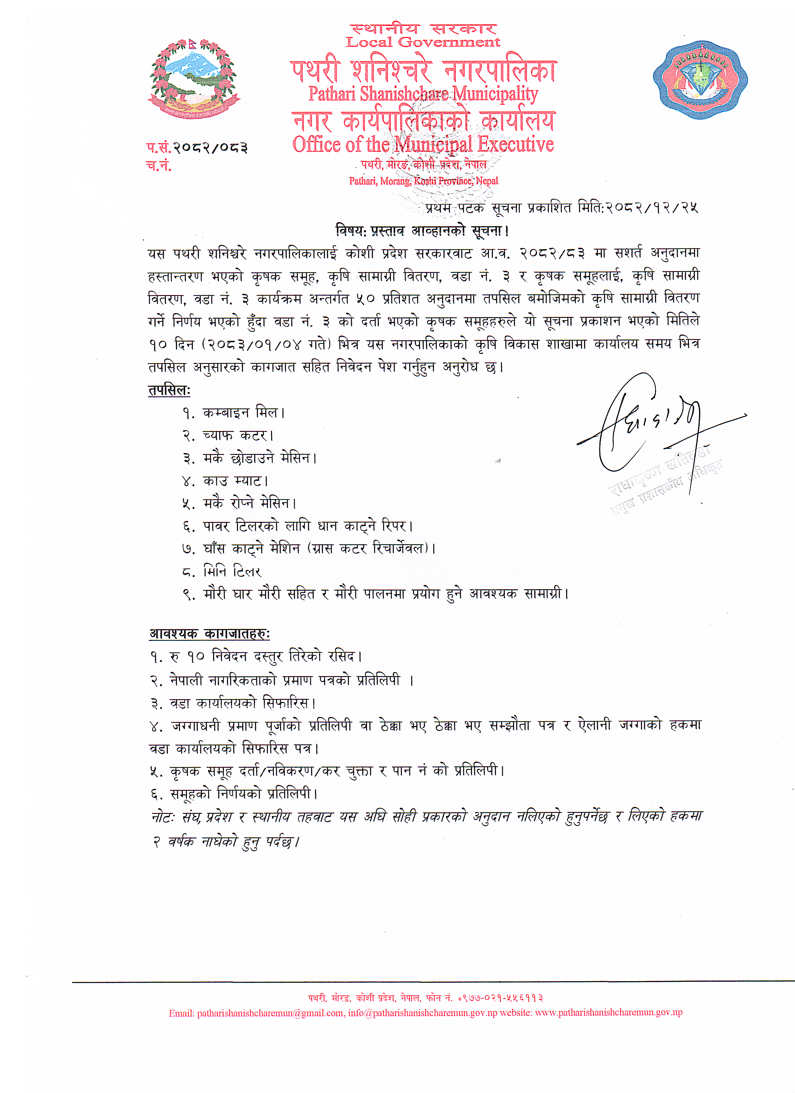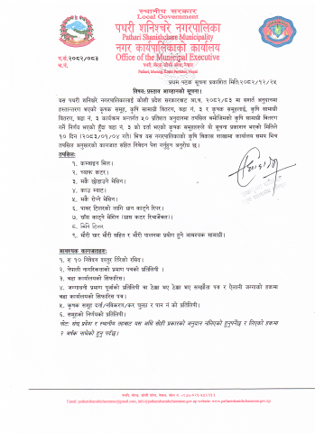 पथरीशनिश्चरे नगरपालिका,नगर कार्यपालिकाको कार्यालय
