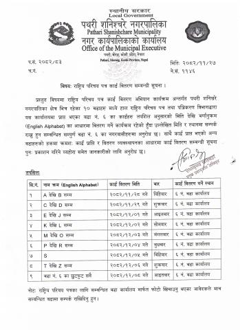 राष्ट्रिय परिचय पत्र कार्ड वितरण सम्बन्धी सूचना ।