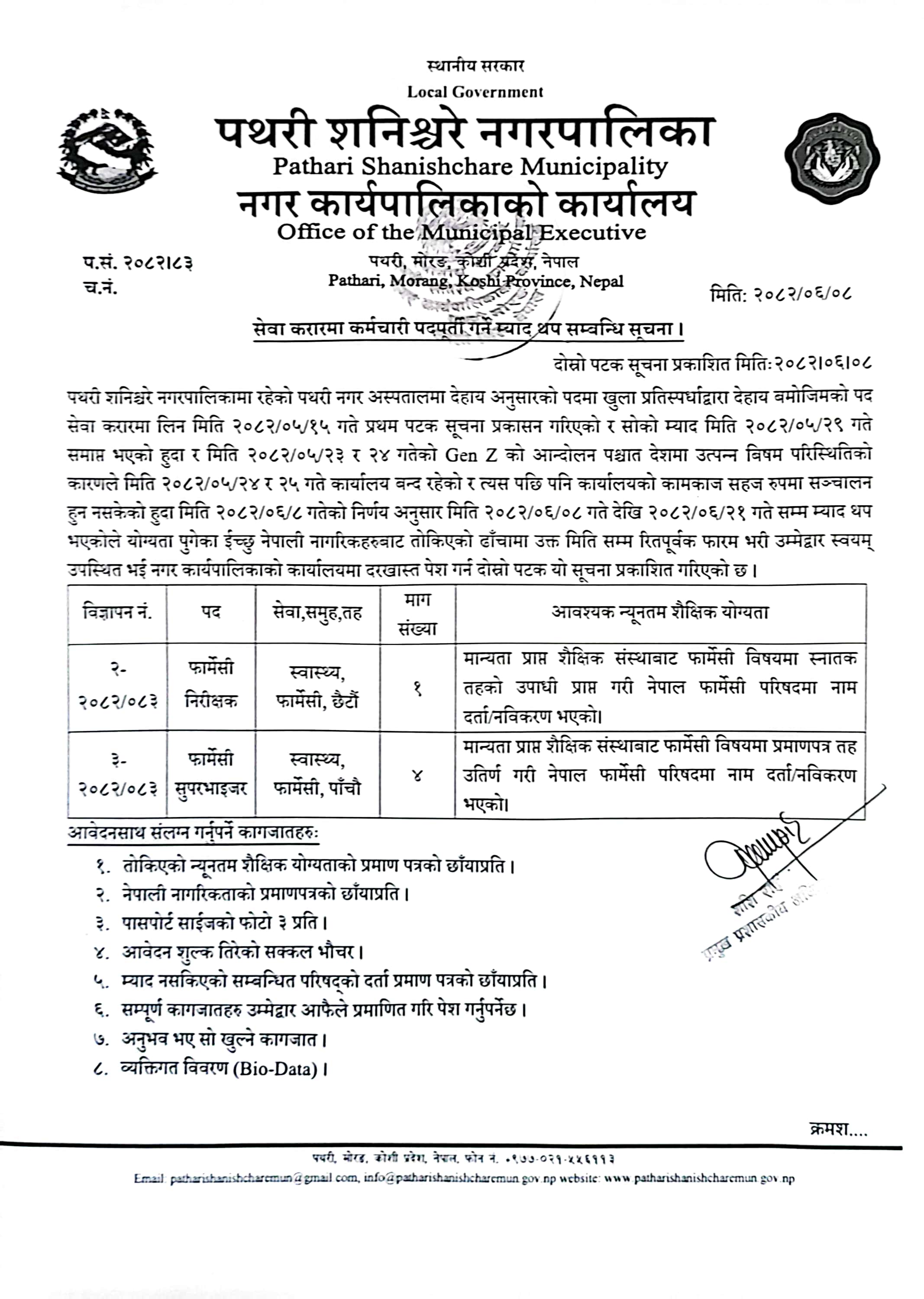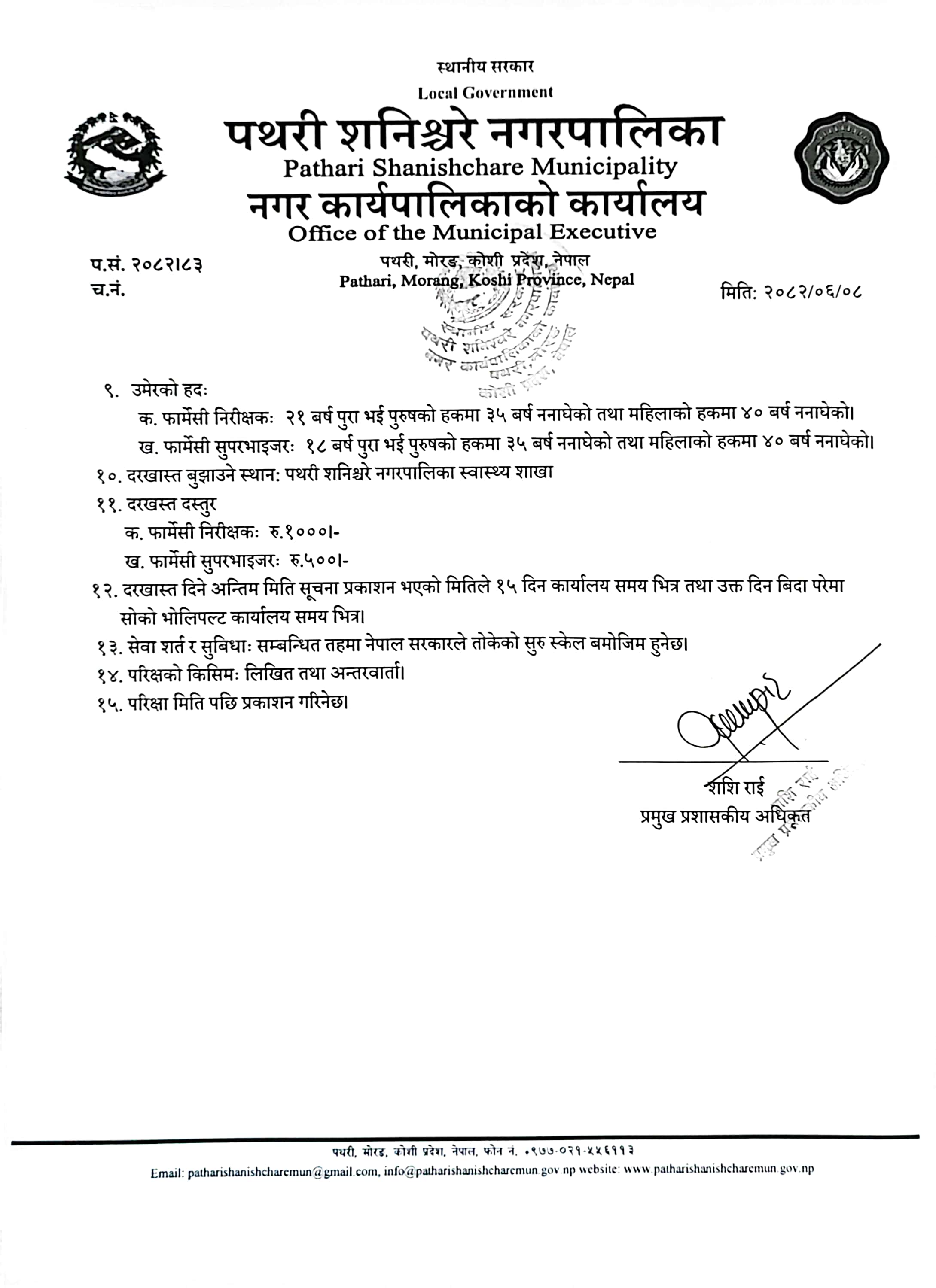 पथरीशनिश्चरे नगरपालिका,नगर कार्यपालिकाको कार्यालय