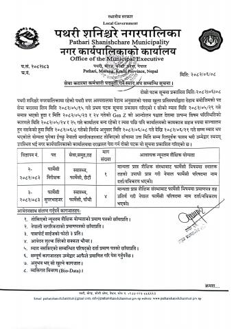 सेवा करारमा कर्मचारी पदपूर्ति गर्ने सम्बन्धी सूचना ।