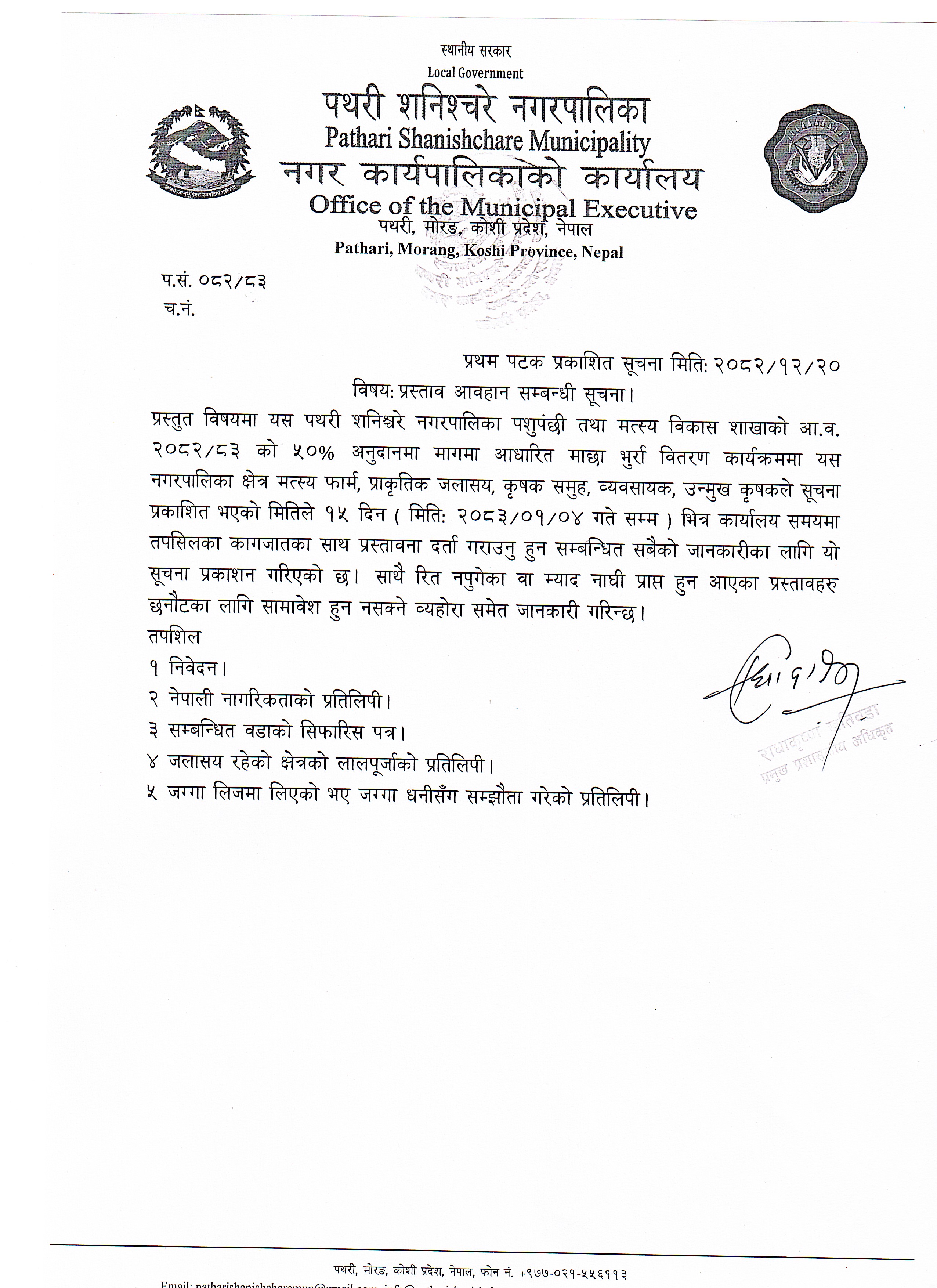 बोलपत्र आह्वान सम्बन्धी सुचना ।