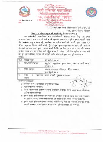 पथरीशनिश्चरे नगरपालिका काे अा.ब. २०७३।७४ मा सम्पन्न गरीने याेजनाकाे विवरण