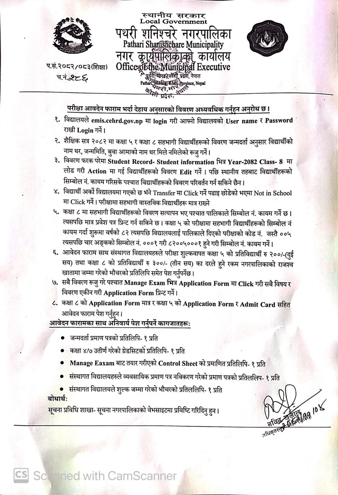 » आधारभूत तह कक्षा ५ र कक्षा ८ को परीक्षा तालिका तथा परीक्षा आवेदन फाराम पेश गर्ने सम्बन्धी सूचना ।।
