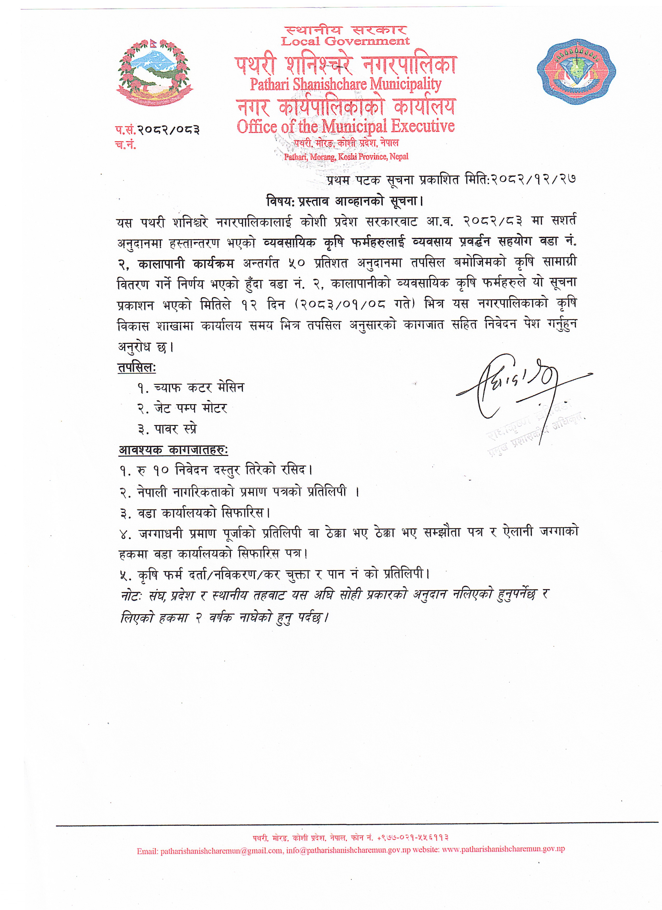 बोलपत्र आह्वान सम्बन्धी सुचना ।