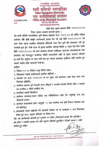 बोलपत्र आह्वान सम्बन्धी सुचना ।