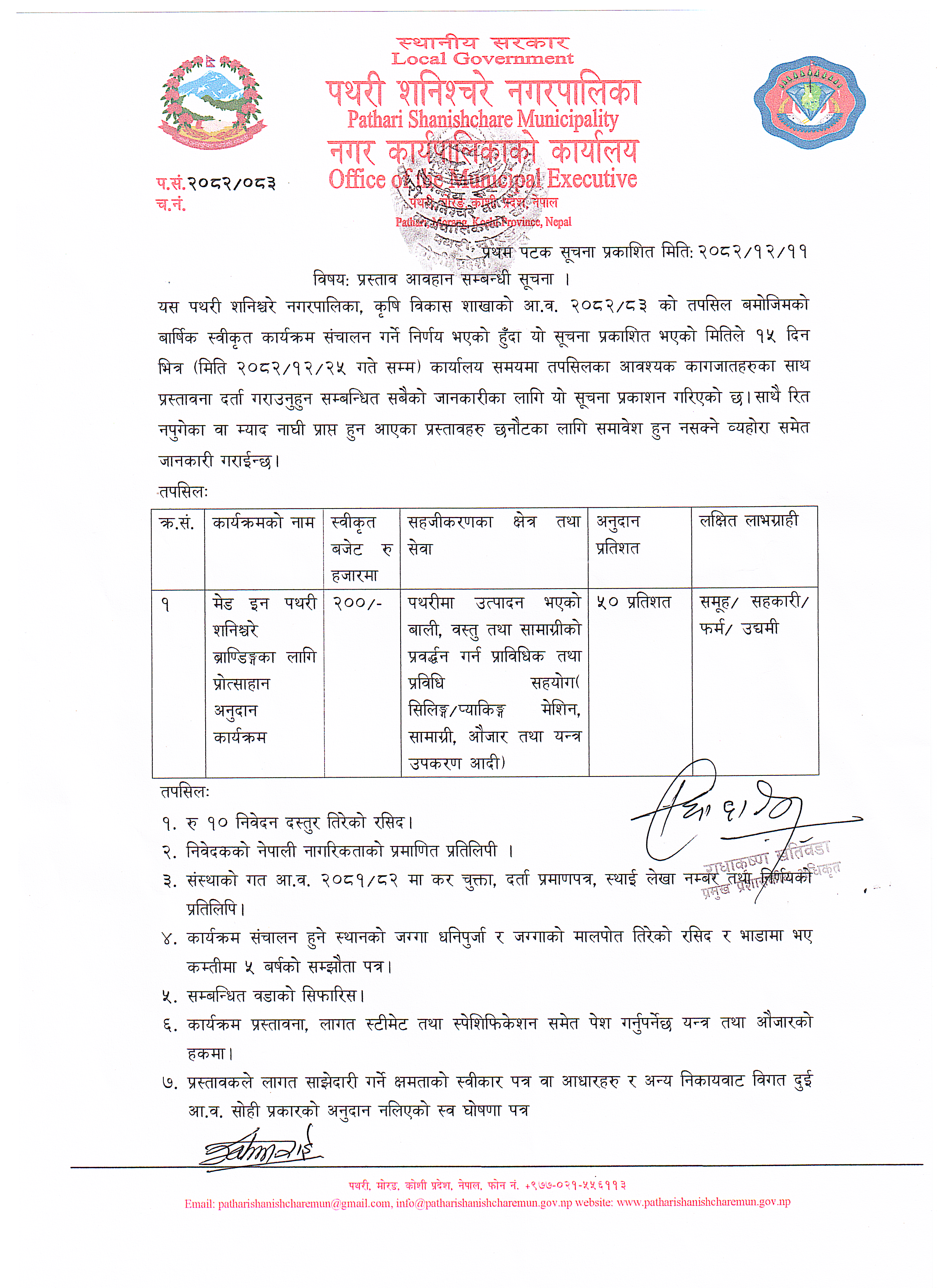पथरीशनिश्चरे नगरपालिका,नगर कार्यपालिकाको कार्यालय