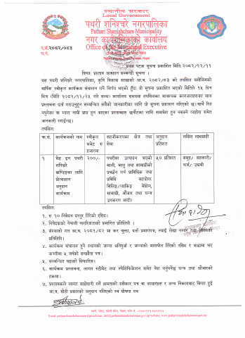 बोलपत्र आह्वान सम्बन्धी सुचना ।