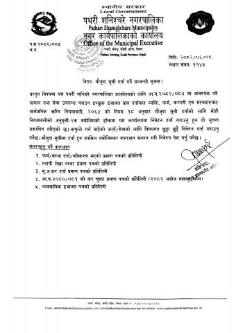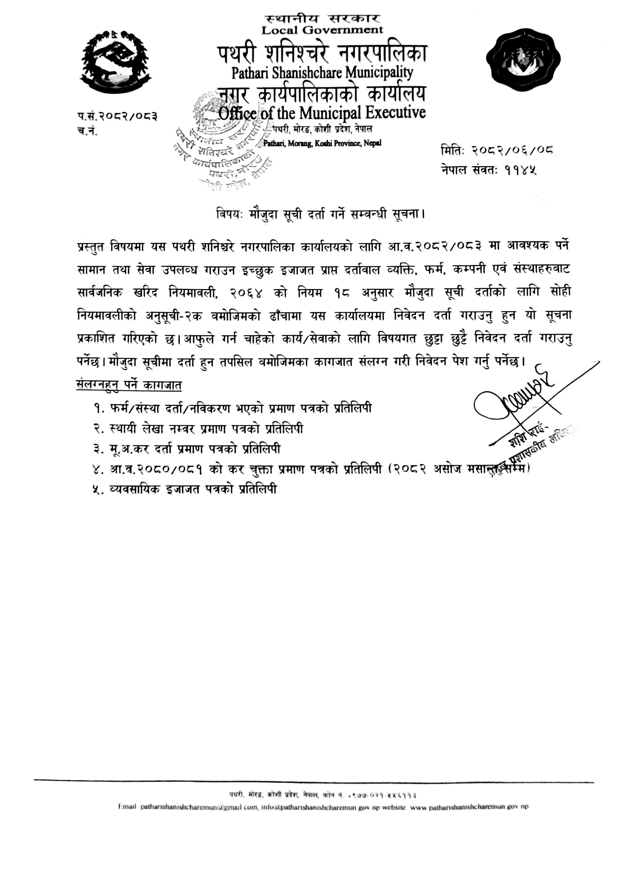 मौजुदा सूची दर्ता गर्ने सम्बन्धी सूचना।
