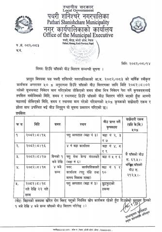 हिउँदे घाँस (जै र वर्सिम) को बिउ वितरण सम्बन्धी सूचना ।